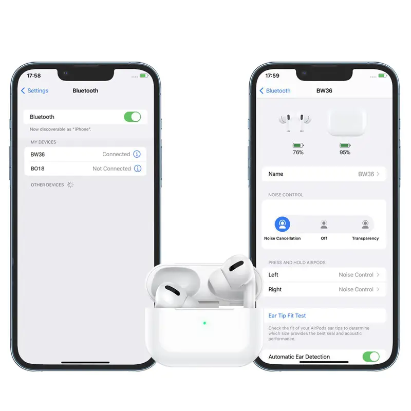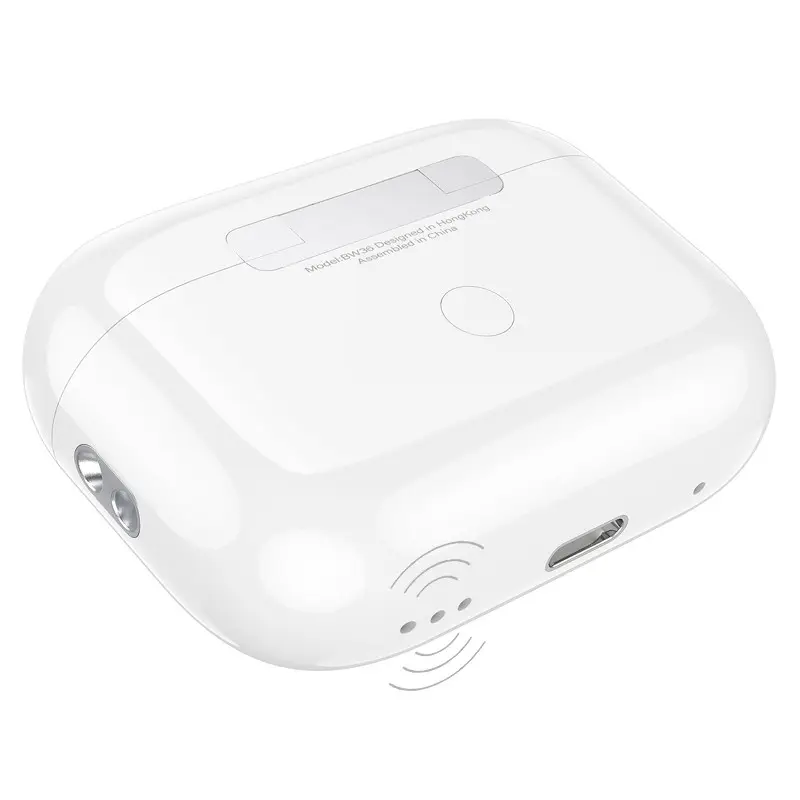 — виклик Siri.Навушники зручно «сідають» у вушному каналі, створюючи хорошу ізоляцію зовнішніх звуків. Білий колір зовнішніх елементів привертає увагу та відтіняє стильний зовнішній вигляд власника. Змінити гучність, змінити трек або відповісти на дзвінок дозволяє сенсорне керування гарнітури.Borofone BW36 працюють до 3,5 годин у режимі розмови чи прослуховування музики та 140 годин у режимі очікування. Щоб поновити заряд навушників, знадобиться всього лише 2 години. Зарядний чохол підтримує бездротову зарядку.