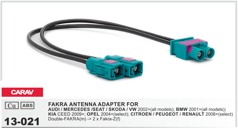 Только для автомобилей с двойным спаренным разъемом Fakra,