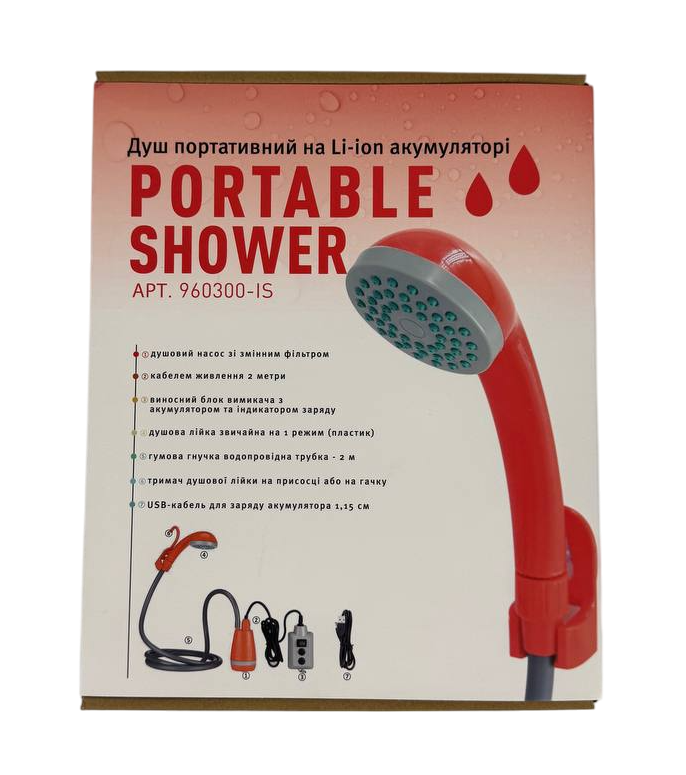 Портативний душовий насос із акумулятором та аксесуарами – зручність у будь-якому місці!