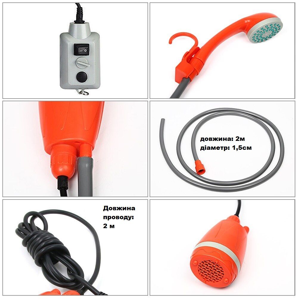 Душ туристичний портативний на акумуляторі Li-ion (2200 мАч) для кемпінгу та дачі з виносним вимикачем, помаранчевий