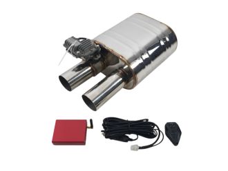 Глушитель с заслонкой на выхлоп с дистанционным пультом управления под магистраль диаметром 63мм, что позволяет управлять потоком выхлопных газов и выбирать между спортивным прямоточным и штатным звуком глушителя.