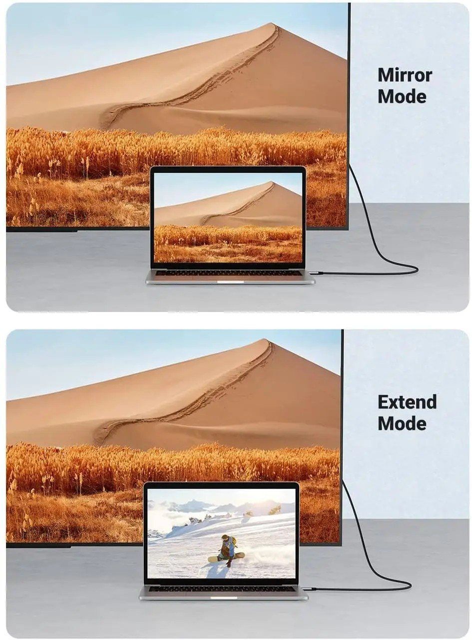 Кабель UGREEN MM142 USB-C to HDMI Male to Male Cable Aluminum Shell 1.5m (Gray Black)(UGR-50570) дозволяє підключити ноутбук або мобільний телефон безпосередньо до монітора, телевізора або проектора для передачі зображення. Використовуючи свій телефон як комп'ютер, ви можете легко передати його зі свого мобільного телефону на телевізор або інший пристрій.