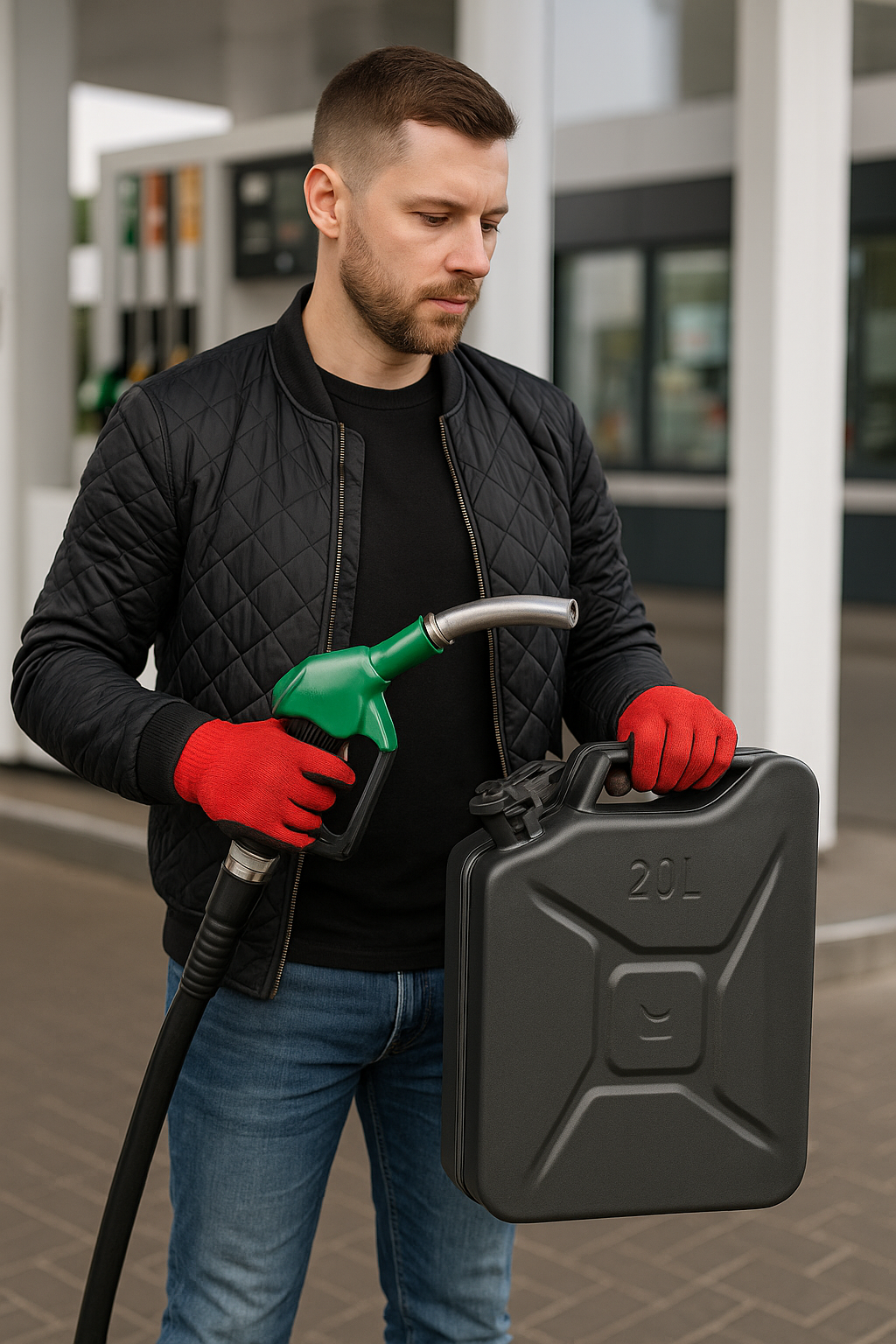 Каністра металева з покриттям RAPTOR для палива 0.84 товщина металу 20л з рукавичками (пара), чорний МАТ, ТМ Poputchik