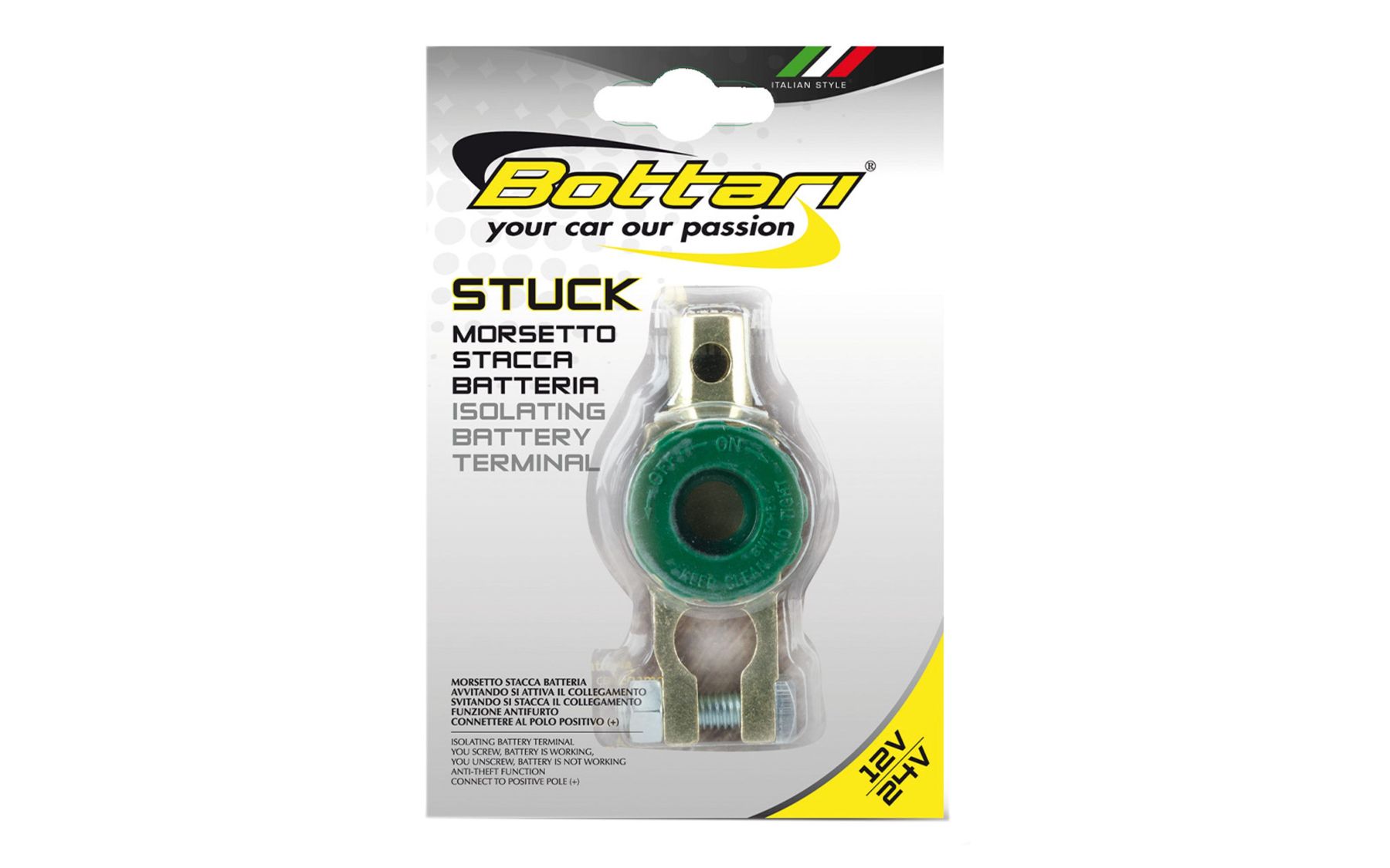 Універсальна акумуляторна клема з додатковою можливістю вимкнення маси автомобіля, що гарантує мінімальний опір, відсутність втрат енергії і стійкість до корозії. Вимкнення маси дозволяє зберегти заряд акумулятора навіть при тривалому простої Вашого авто, для цього достатньо просто встановити регулятор в потрібне положення.