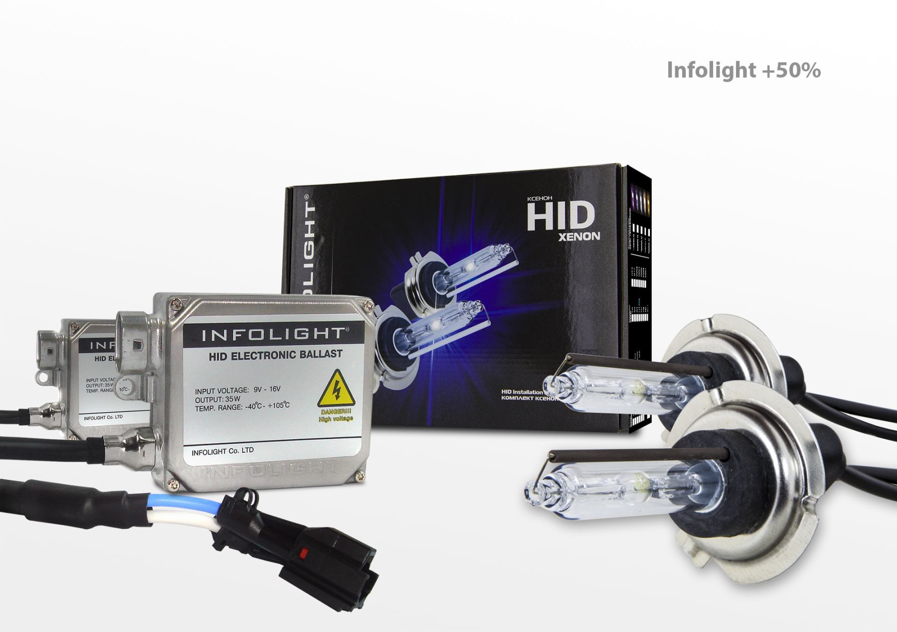 Ксенон Infolight +50% – это качественно новый уровень автомобильного головного света. Световой поток, создаваемый ксеноновыми лампами Infolight +50%, максимально приближен к природному дневному свету, что в свою очередь обеспечивает более естественное и более яркое освещение дороги при любых погодных условиях.