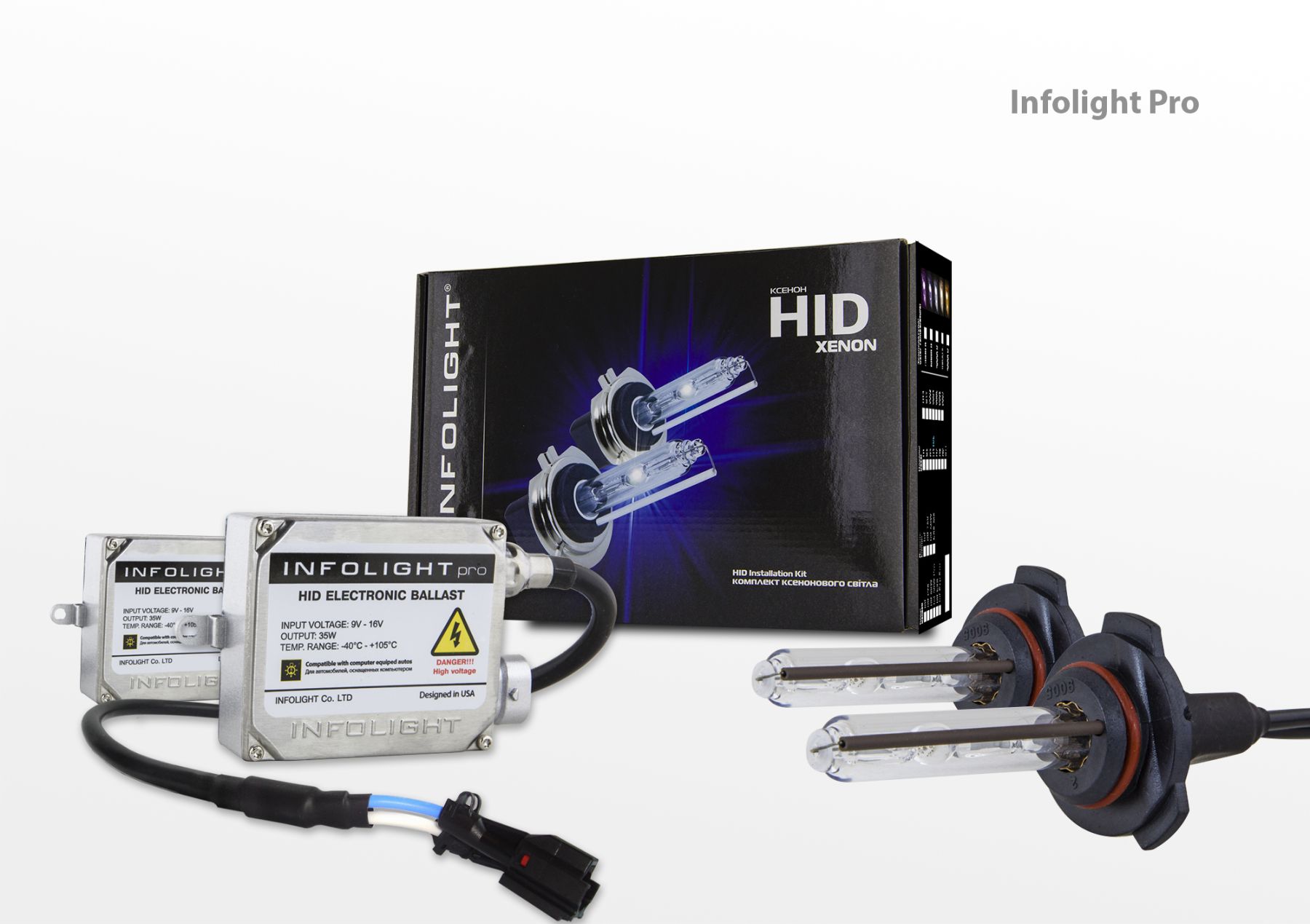 Особенностью блоков Infolight Pro является то, что они имеют встроенную обманку бортового компьютера (canbus). Обманка (canbus) - это устройство которое создает дополнительное сопротивление в цепи лампы, она необходима для того, чтобы контроллер не сообщал об ошибке, если лампочка меньшей мощности, и обеспечивает корректную работу автомобильной электроники. Они используются при замене галогеновых ламп на ксеноновые или светодиодные, когда нет возможности перепрограммировать бортовой компьютер.Комплекты ксенона Infolight устанавливаются почти на любой автомобиль, а также обладают встроенными системами блокировки при разбитии лампы и обрыве (коротком замыкании) высоковольтных проводов
