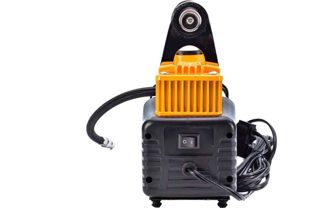 У комплекті з компресором поставляється кручений шланг з трьома універсальними насадками - перехідниками для з'єднання з шиною. До нього приєднується звичний аналоговий манометр.