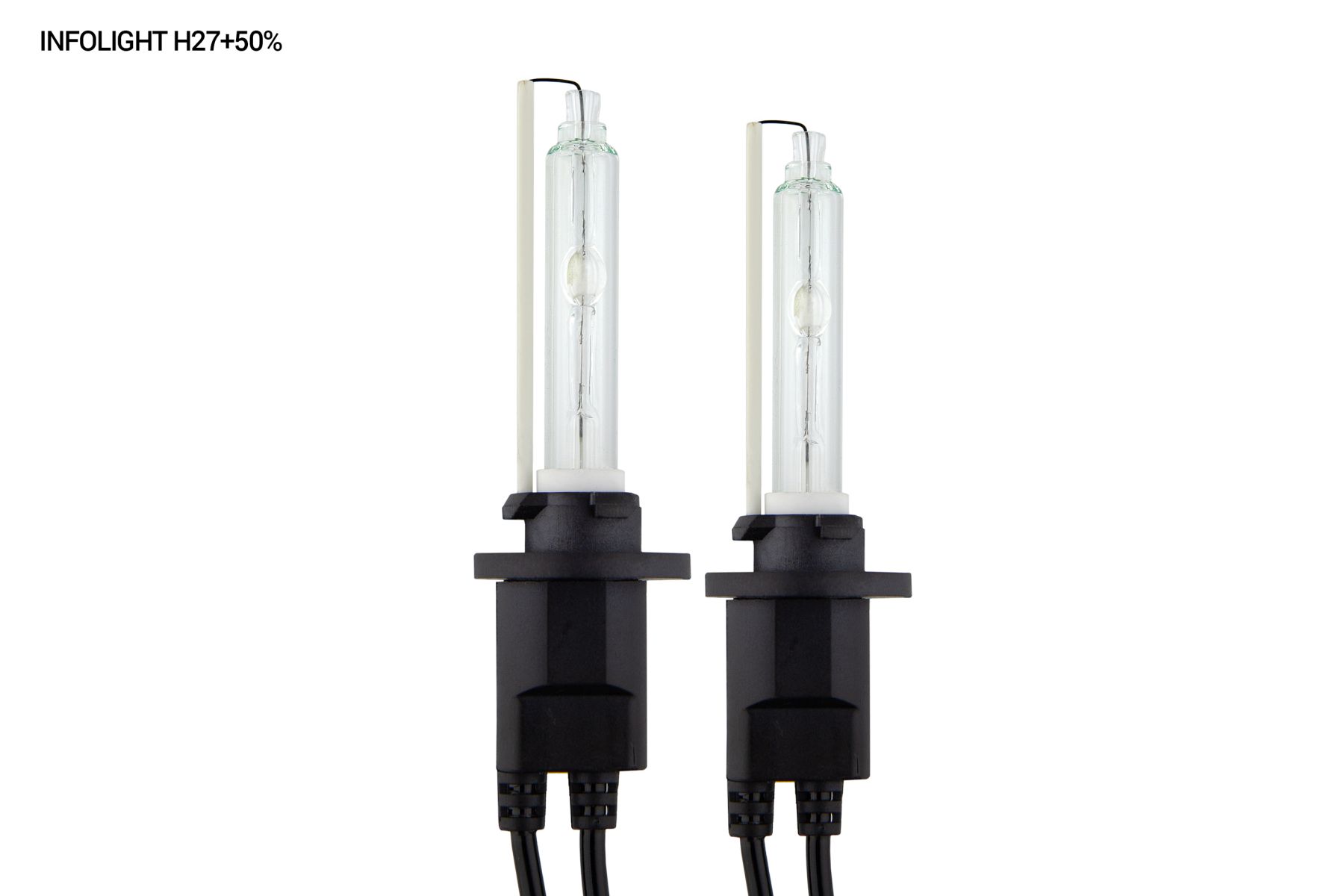 По сравнению с обычной ксеноновой лампы Infolight Н27, лампа Infolight Н27 (+50%) светит до 50% ярче и выдает более длинный световой конус (при этом потребляемая мощность остается неизменной).
