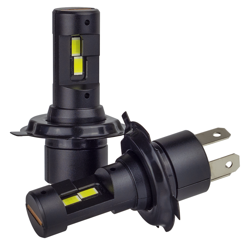 Потужні світлодіодні лампи ближнє/дальнє світло з цоколем H4. Надвисока яскравість — 7000 люмен.Характеристики:Тип цоколя: H4 H/LНапруга: 9–32 ВПотужність: 30 ВтКолір світла: 5500KЯскравість: 7000LmТип: LEDКомплектація: 2 лампи