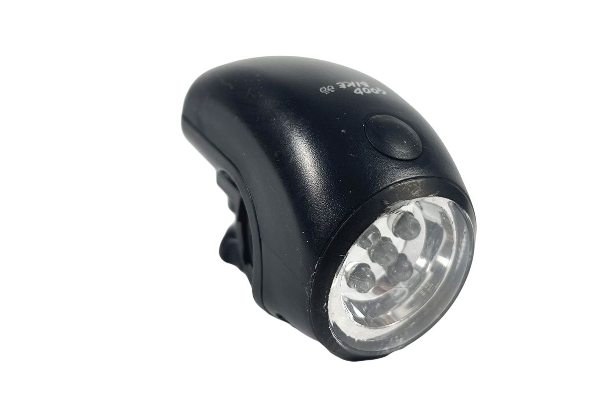 Комплект велосипедних ліхтарів переднє та заднє світло у пластиковому водозахисному корпусі з простим кріпленням.