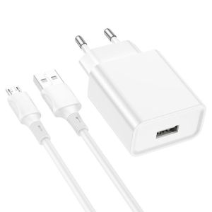 BOROFONE BA74A Aspirer single port charger set(Micro) White — класичний мережевий зарядний пристрій з одним вихідним портом та кабелем з Micro-роз'ємом.