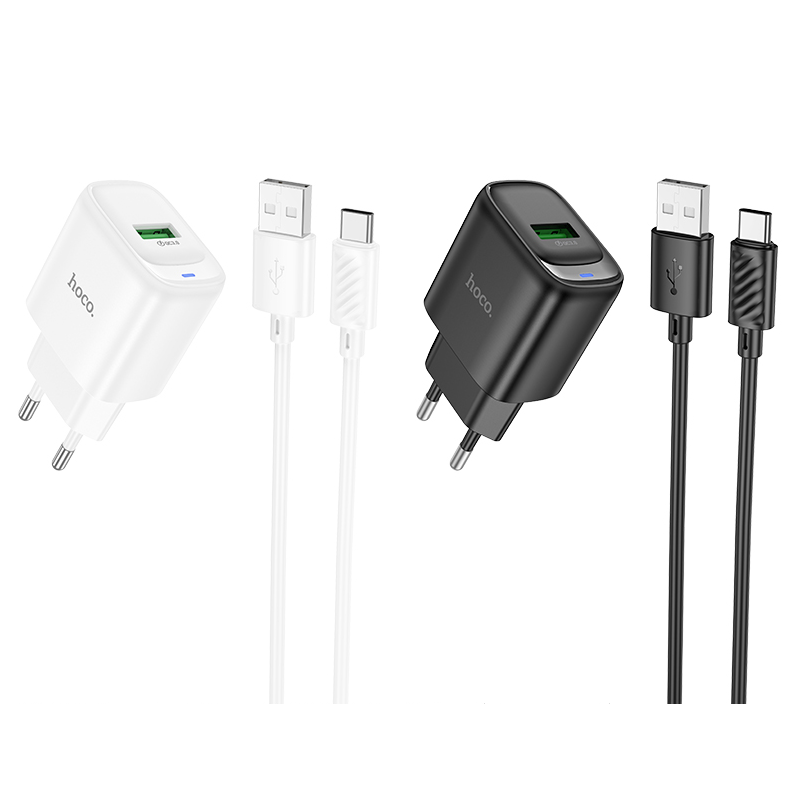 Мережевий зарядний пристрій з кабелем HOCO C140A Smart single port QC3.0 charger set(Type-C)(EU) Black (6942007627825)