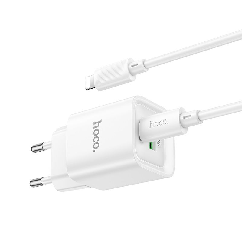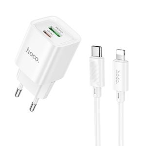 Мережевий зарядний пристрій з кабелем HOCO C147A Charm PD20W+QC3.0 charger set (C to iP)(EU) White (6942007630283)