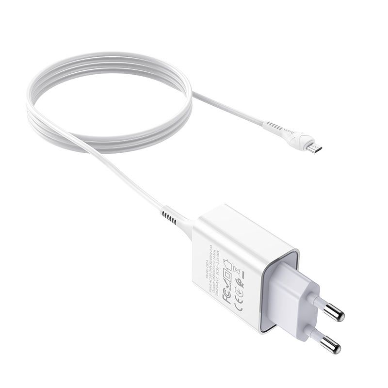 Мережевий зарядний пристрій з кабелем HOCO C81A Asombroso single port charger set(Micro) 10.5W White (6931474727954)