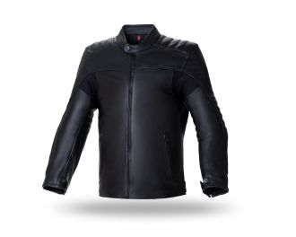 Чоловіча куртка у стилі Cafe Racer, простий і елегантний дизайн із ромбоподібним швом. Виготовлена з повної аналінової бичачої шкіри, з еластичною тканиною на гнучких ділянках і з'ємною підкладкою Prilation 100 гр. Шкіряний комфортний комір. Система застібки коміра на гудзики з двома положеннями регулювання. Зап'ястя на блискавці та кнопці. Регулюється по стегнах за допомогою кнопки. Дві бічні кишені на блискавці. М’які вставки на плечах і ліктях для комфорту. Основна блискавка YKK і додаткові блискавки YKK і MAX. Включає кишеню для мобільного телефону. Знімні протектори ліктів і плечей схвалено 1 рівнем (EN1621). Захисти можна замінити на захист Seventy Degrees рівня 2 (EN1621). Внутрішня кишеня для захисту спини (не входить в комплект) рівня 2 SD-A10, сертифікованого за стандартами EN1621.
