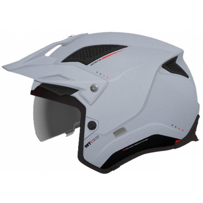 MT District SV S — сучасний міський шолом у форматі Jet із внутрішнім сонцезахисним визором, створений для щоденної експлуатації та легких виїздів за місто. Він поєднує комфорт, високу функціональність та безпеку завдяки сертифікації ECE 22.06 і DOT, що робить його офіційно придатним як для Європи, так і для США.