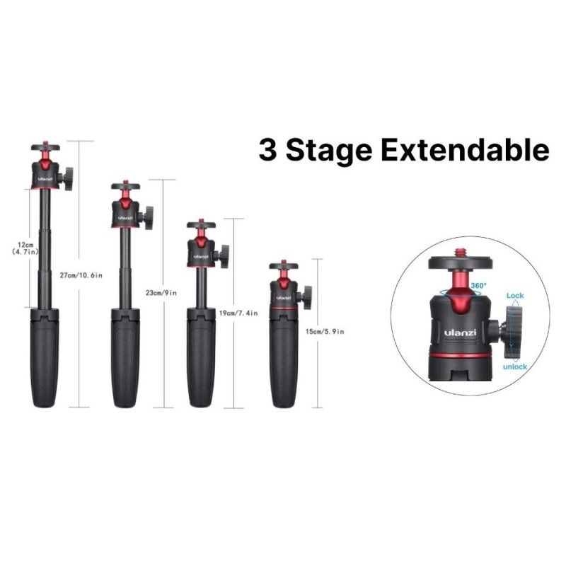 Особливості:Телескопічна ніжка штатива, кульове кріплення обертається на 360°, підсвітка працює від акумулятора