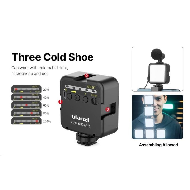 Ulanzi Vijim vlog kit 6 (UV-2057) — професійний комплект для ведення блогу або відеоподкасту. У набір входить кріплення для мобільного телефону, світлодіодний світильник, висувний штатив.ШТАТИВ ДЛЯ СТАБІЛЬНОСТІШтатив, що входить до комплекту, має три висувні ніжки. Також він може використовуватися як селфіпалка. Максимальна довжина штатива — 27 см. Кульове кріплення обертається на 360 градусів, що дає змогу налаштувати кут нахилу смартфона під час зйомки.ТРИМАЧ ДЛЯ СМАРТФОНАРозсувний тримач для смартфона має кріплення на холодний черевик для встановлення додаткової апаратури. Можливе встановлення аксесуарів як у вертикальному, так і горизонтальному положенні.КІЛЬКА РІВНІВ ОСВІТЛЕННЯНабір оснащений LED-лампою з регульованим освітленням. 5 рівнів яскравості дають змогу підібрати найбільш відповідний режим для якісної зйомки. Прилад працює від акумуляторної батареї ємністю 2000 мАг.
