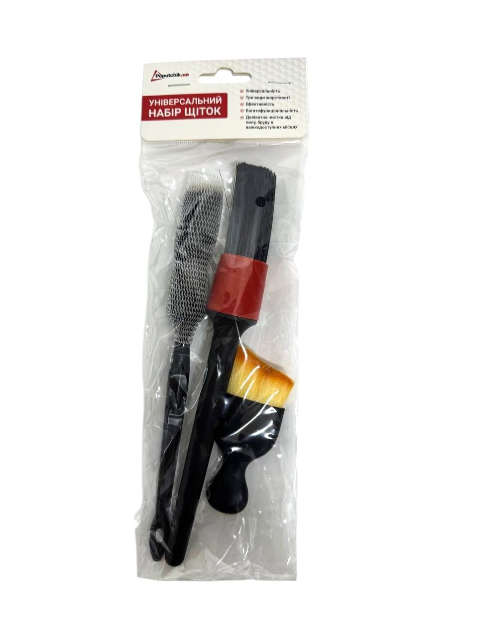 Набір універсальних щіток стане надійним помічником у догляді за автомобілем як у салоні, так і зовні. Завдяки різній жорсткості щетини та продуманій формі кожна щітка має своє призначення: