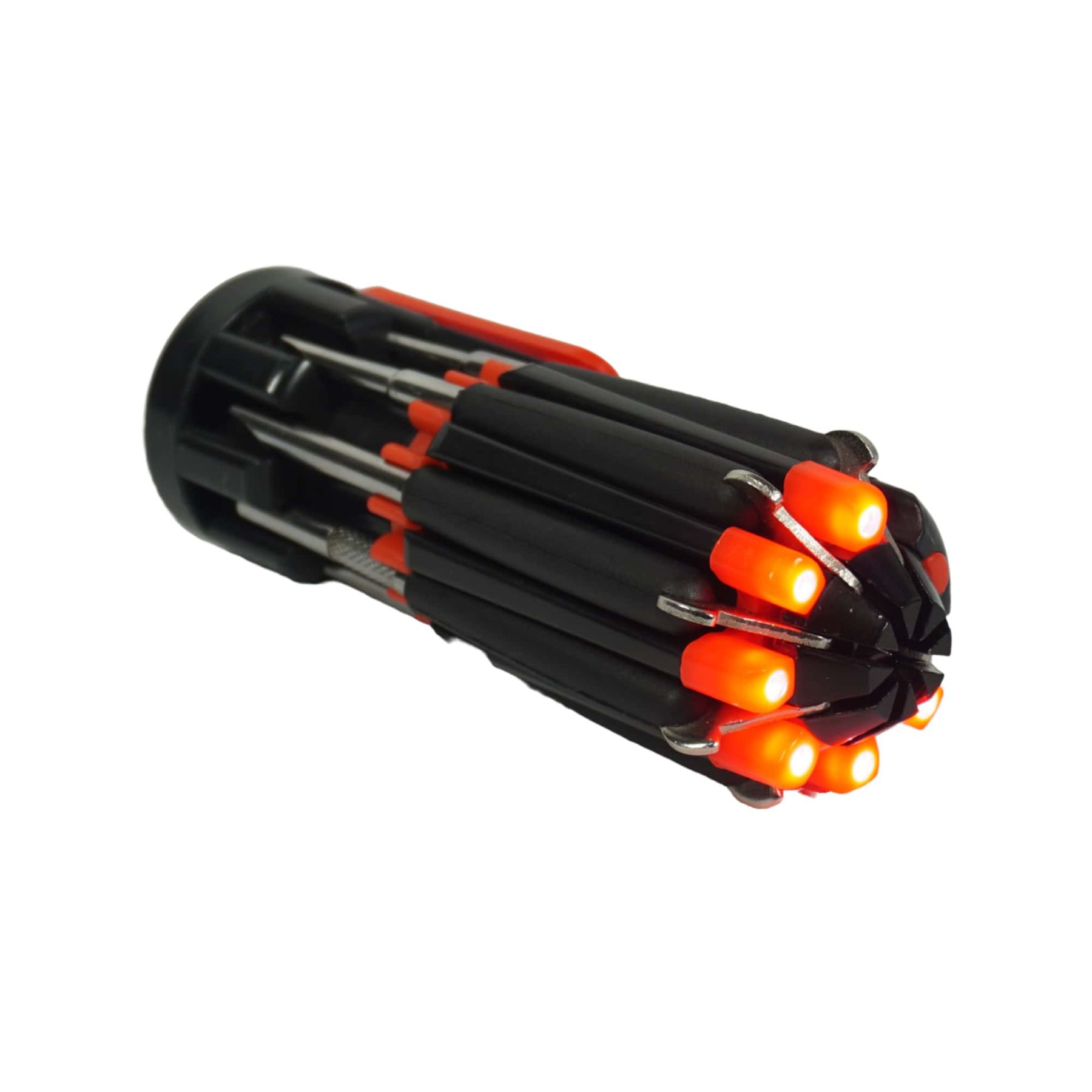 Набір викуруток з ліхтариком 8 в 1 - це інструмент для вкручування або викручування шурупів, саморізів або гвинтів. Складається з чотирьох хрестових та чотирьох шліцевих наконечників різних розмірів, що складаються в ручку.