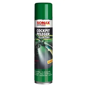 Глянцевий очищувач пластику SONAX Cockpit Pfleger (342300) призначений для очищення і профілактичного догляду за панеллю приладів автомобіля та іншими пластиковими елементами салону автомобіля. Очищувач швидко та легко очищає пластикову поверхню, видаляє з мікропор пил, різні забруднення тощо, а також надає поверхні глянсового блиску. Оброблена поверхня набуває пилевідштовхуючої, антистатичної властивості, а також надійно захищається від негативного впливу УФ-променів. Очисник пластику також підходить для дерев'яної фурнітури. Після обробки пластику в салоні залишиться приємний, свіжий аромат ванілі.
