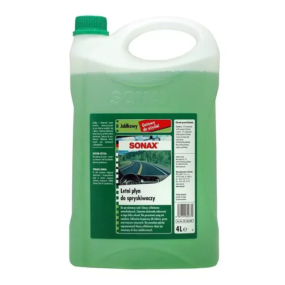 Літній склоомивач SONAX (261405) із приємним запахом яблука, готовий для застосування. Підходить для стекол та фар (у тому числі для ксенонових). Рідини для скла SONAX не містять шкідливих та агресивних хімічних речовин і при їх використанні у вас не з'являтиметься неприємний отруйний запах у салоні автомобіля. Крім цього, омивач SONAX запобігає появі подряпин і не ушкоджує поверхню скла та лакофарбового покриття автомобіля, на яке він може потрапляти з форсунок омивача.