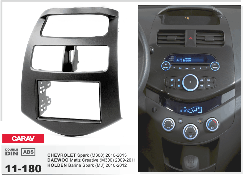 Сarav 11-180 - пepexoднaя paмкa с карманом 2 DІN для aвтoмoбилeй CHEVROLET Spark (M300) 2010-2013 / DAEWOO Matiz Creative (M300) 2009-2011 / HOLDEN Barina Spark (MJ) 2010-2012.