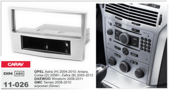 Сarav 11-026 - пepexoднaя paмкa 1 DІN для aвтoмoбилeй OPEL Astra (H) 2004-2010; Antara, Corsa (D) 2006+; Zafira (B) 2005-2012 / DAEWOO Winstorm 2008-2011 / GMC Terrain 2008-2010 w/pocket (Silver)