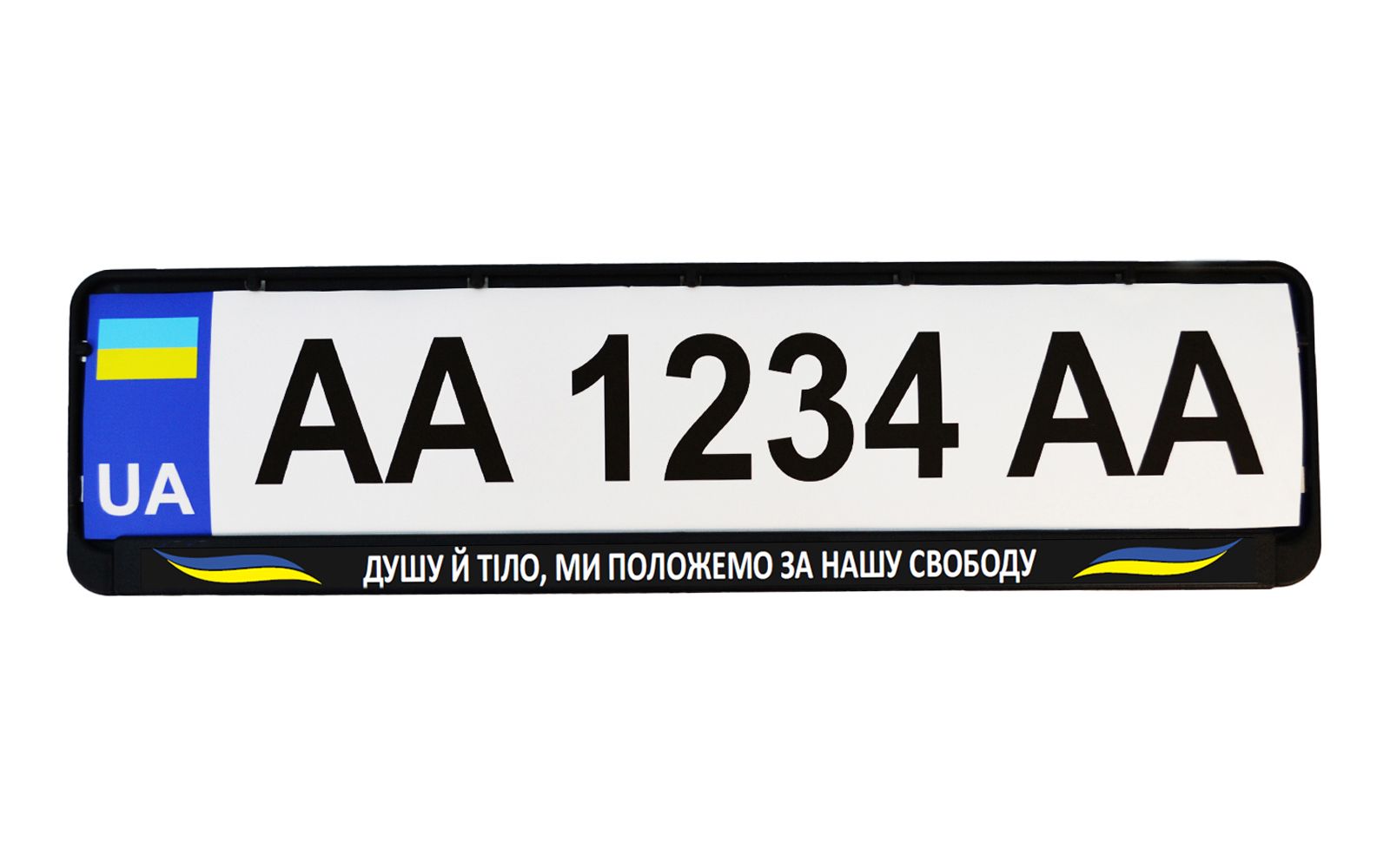Рамка номерного знака патріотична "ДУШУ Й ТІЛО, МИ ПОЛОЖЕМО ЗА НАШУ СВОБОДУ"