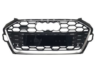 Решетка радиатора Silver Black (Mate) (в стиле S4) на Audi A4 B9 2019-2023 года
