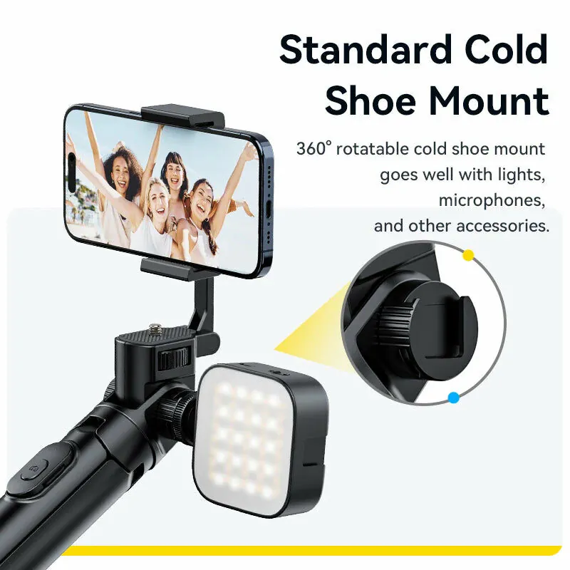 Ulanzi MT-70 з палицею для селфі з пультом (T027GBB1) — штатив для смартфона 2-в-1, який є і штативом, і палкою для селфі в одному.Матеріал, з якого виготовлений штатив — алюміній, міцний і довговічний. Поставляється з 3-ножною підставкою, виготовленою з міцного, легкого ПК.Ulanzi MT-70 можна подовжити максимум до 160 см і зберігати в складеному розмірі 32 см. Невеликий розмір, надзвичайно портативний.Штатив підтримує використання з камерами зі стандартною різьбою 1/4, можна нахиляти та повертати.Підставка оснащена гніздом для аксесуарів Cold Shoe, що дозволяє легко додавати різноманітне обладнання, наприклад світлодіодні лампи або мікрофони.Також штатив має вбудований тримач для мобільного телефону, який можна обертати на 360 градусів, підтримуючи як вертикальне, так і горизонтальне використання. Вміщує мобільні телефони від 61-97 мм.Підтримує бездротову зйомку фотографій і відео на відстані до 20 м за допомогою вбудованого пульта дистанційного керування Bluetooth.