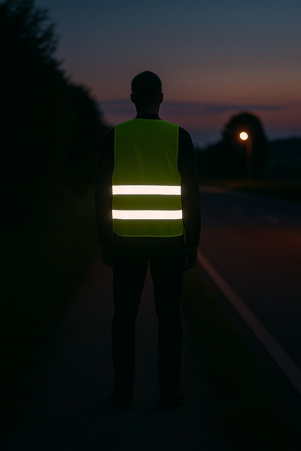 Світловідбивний жилет потрібен для забезпечення видимості водія чи пасажирів у темний час доби або в умовах поганої видимості, особливо під час вимушеної зупинки.