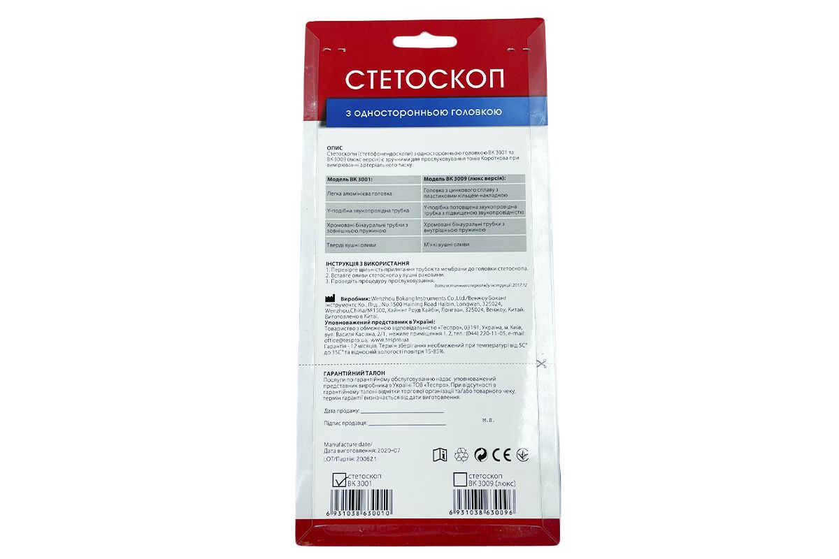 Стетоскоп ВК 3001 - виріб медичного призначення, що застосовується для прослуховування внутрішніх органів людини.
