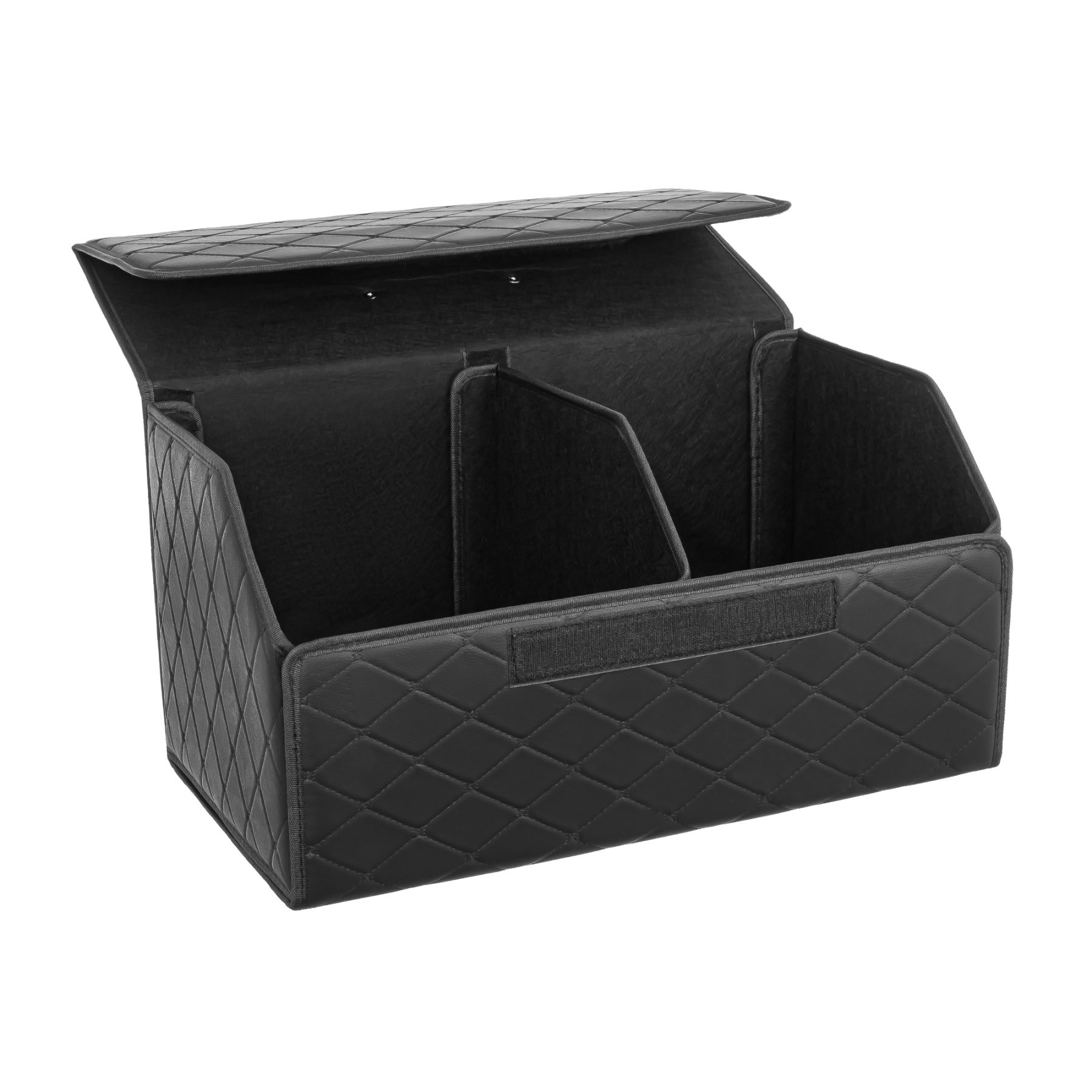 Органайзер для багажника авто Poputchik — зручне рішення для оптимізації простору у вашому автомобілі. Завдяки двом містким відсікам, ви зможете організувати необхідні речі та підтримувати порядок у багажнику. Матеріал екошкіра з армуючою ниткою гарантує довговічність та стійкість до зношування, а водовідштовхуючі властивості забезпечують захист від вологи.