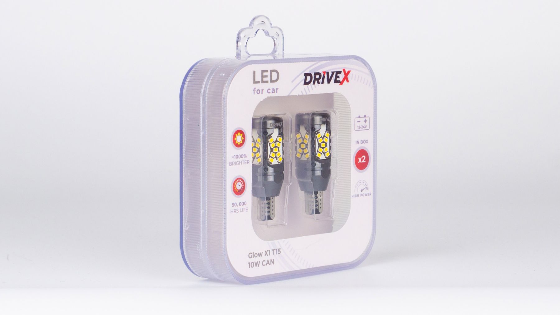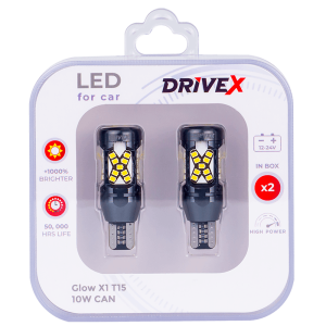 Світлодіоди в габаритні вогні. Підсвітку номера та салона DriveX Glow X1 T15 12-24V 10W CAN 1000Lm W16W d-10mm к-т.