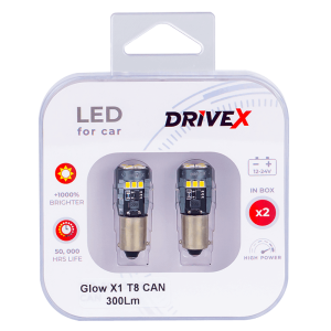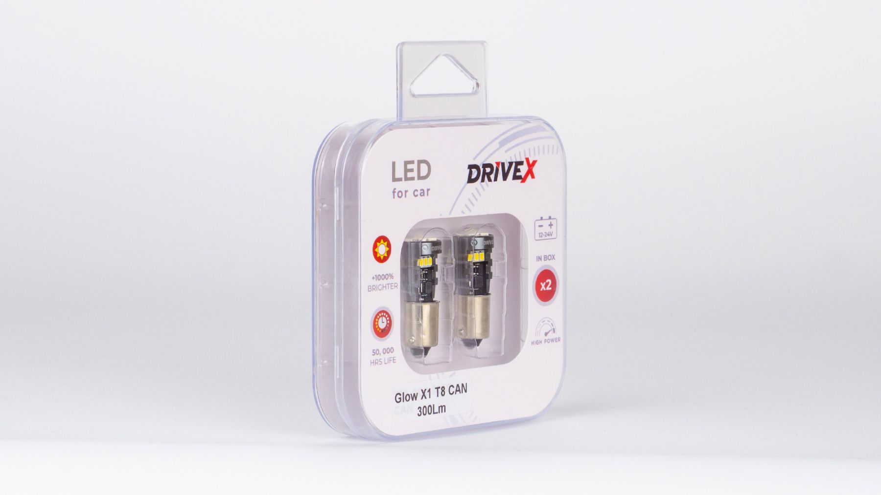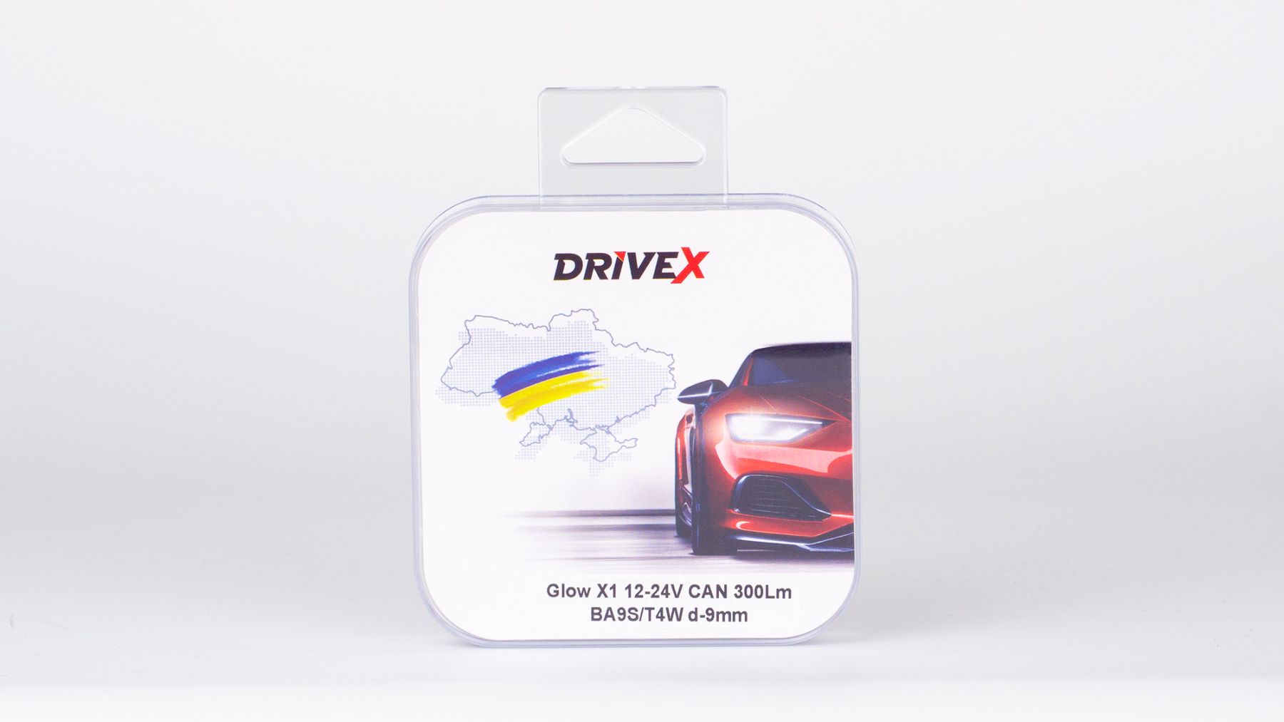 Світлодіоди в габаритні вогні. Підсвітку номера та салона DriveX Glow X1 T8 12-24V CAN 300Lm BA9S/T4W d-9mm к-т.