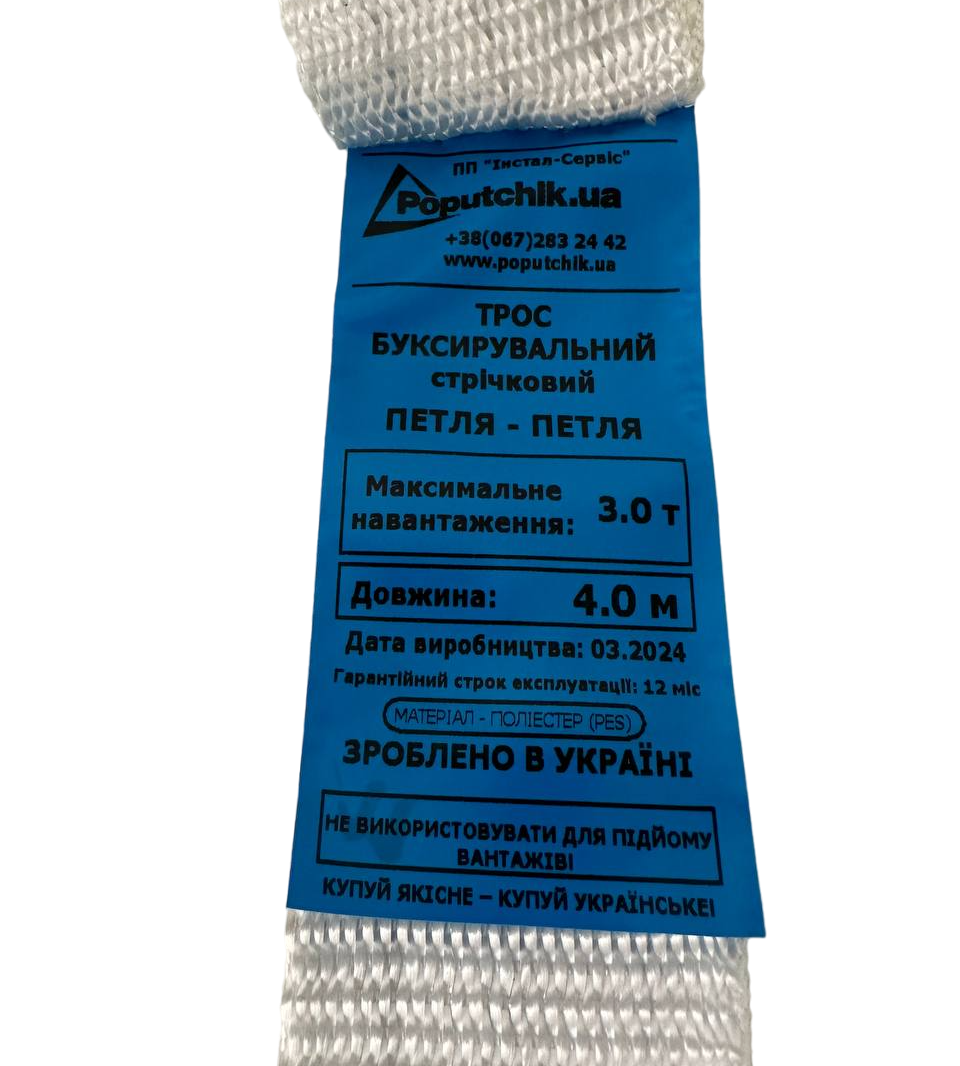 Буксирувальні троси пошиті зі стрічки, яка використовується для виробництва вантажопідйомних строп.