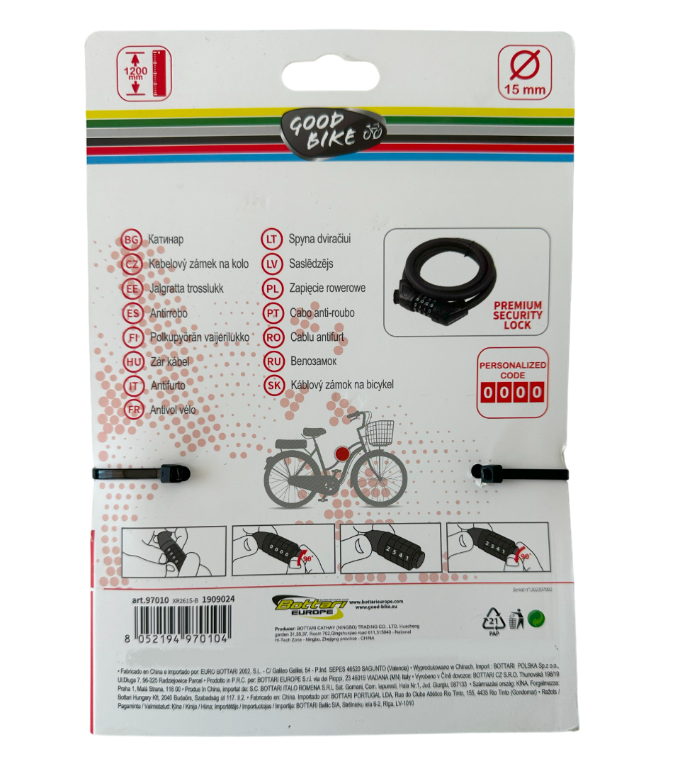 Велозамок тросовий кодовий Ø15 x 1200 мм чорний "PREMIUM SECURITY" (97010-IS)