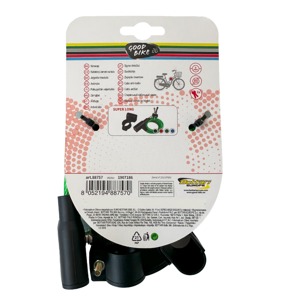 Велозамок тросовий з кріпленням Ø6 x 900 мм зелений "SUPER LONG" (88757G-IS)