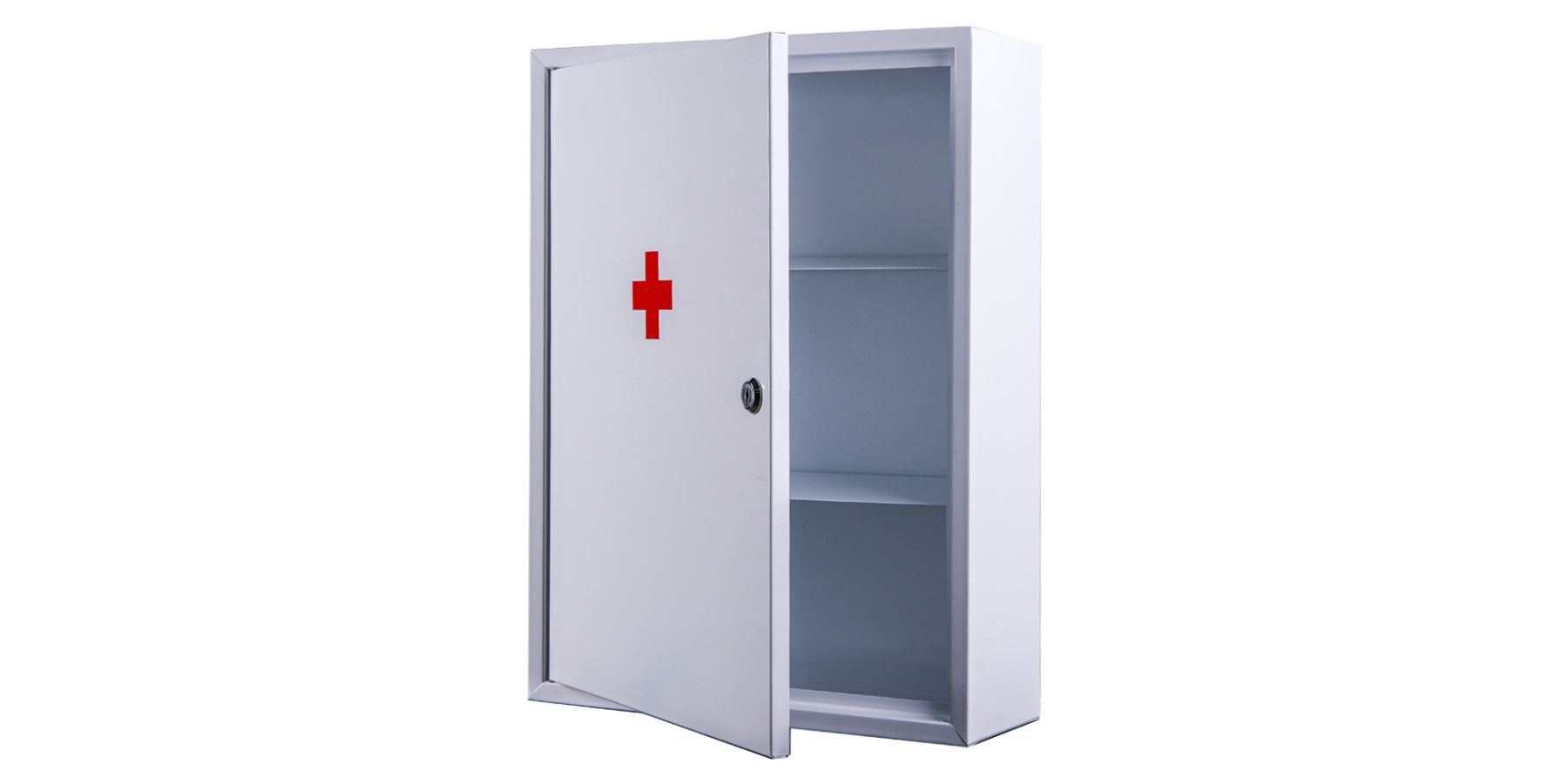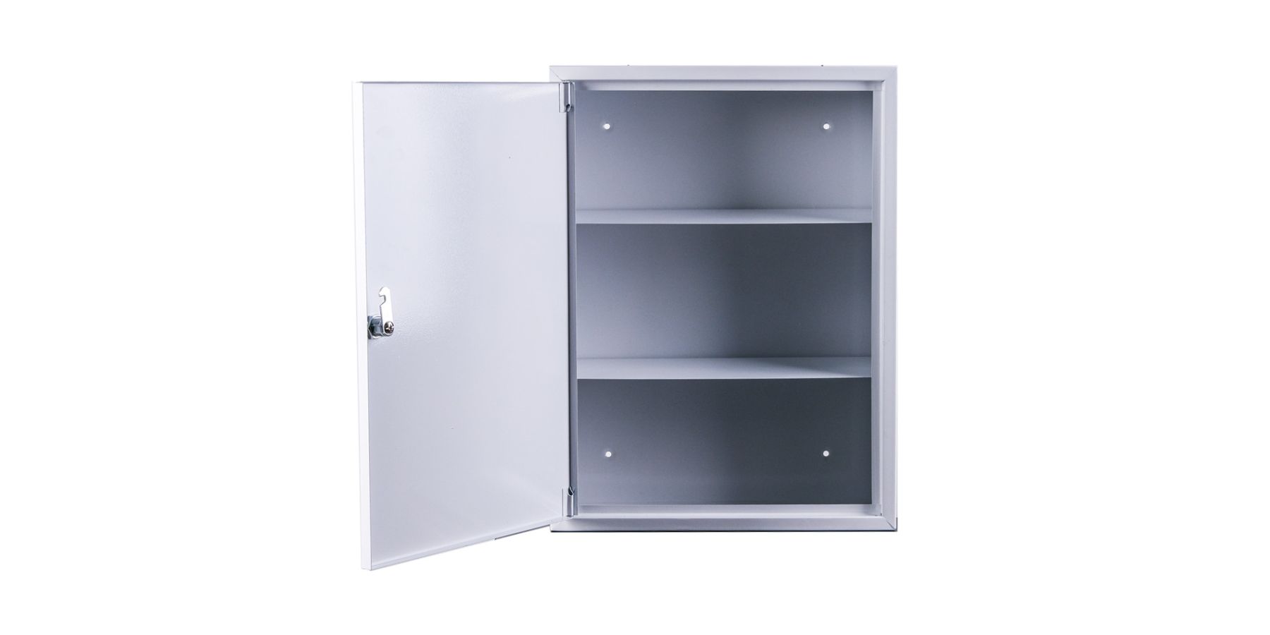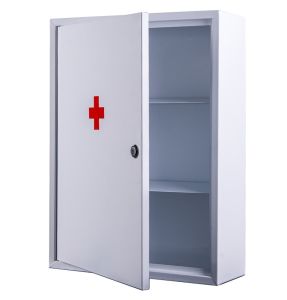 Ящик металевий настінний для медикаментів з двома поличками - ідеально підходить для зберігання медикаментів в офісі.