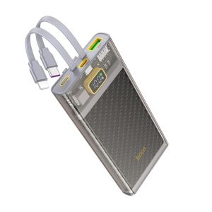 Зовнішній акумулятор HOCO J104A Discovery edition 22.5W має ємність 10000 mAh. Він допоможе зберегти заряд смартфона, планшета, навушників, смартгодинника та інших портативних гаджетів. Завдяки компактним розмірам його зручно брати з собою в подорожі або відрядження.Пауербанк оснащений двома USB-портами: Type-A та Type-C. Окрім цього, акумулятор має вбудовані кабелі Type-C та Lightning. Одночасно можна заряджати до чотирьох пристроїв.Він підтримує різні технології швидкої зарядки, включно з Power Delivery, Quick Charge 3.0, FCP, AFC, SCP. Портативні гаджети заряджатимуться в два рази швидше, ніж від звичайного пауербанка.За допомогою LED-дисплея можна зручно контролювати рівень заряду акумулятора. Вбудовані технології захисту від короткого замикання та перегрівів, що гарантує безпечну зарядку пристроїв. HOCO J104A Discovery edition 22.5W виготовлений з вогнетривких матеріалів, таких як ABS+PC, що також робить його надійним та безпечним.